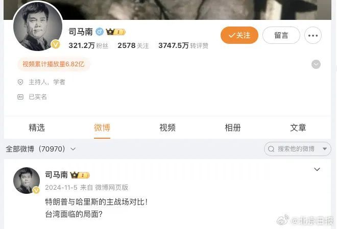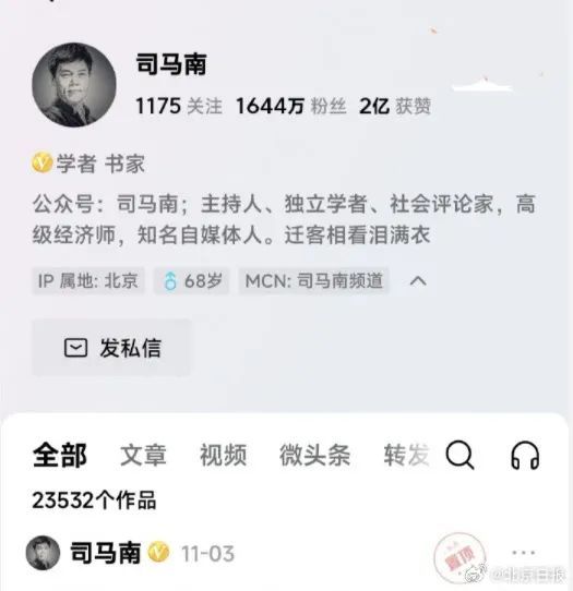搜索司马南各平台账号发现,从去年11月初起,其微博、抖音、头条等平台账号均已停止更新。其在抖音平台拥有超3700万粉丝,今日头条平台粉丝超1600万,全网粉丝超5000万。